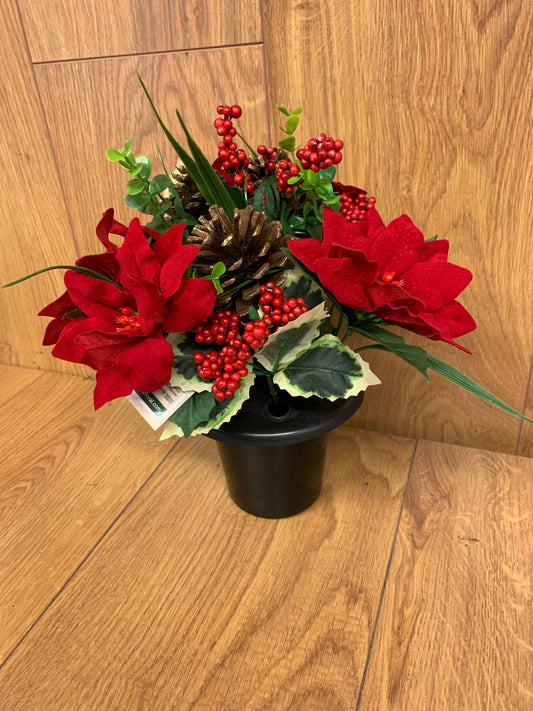 Grave Vase Poinsettia Bush